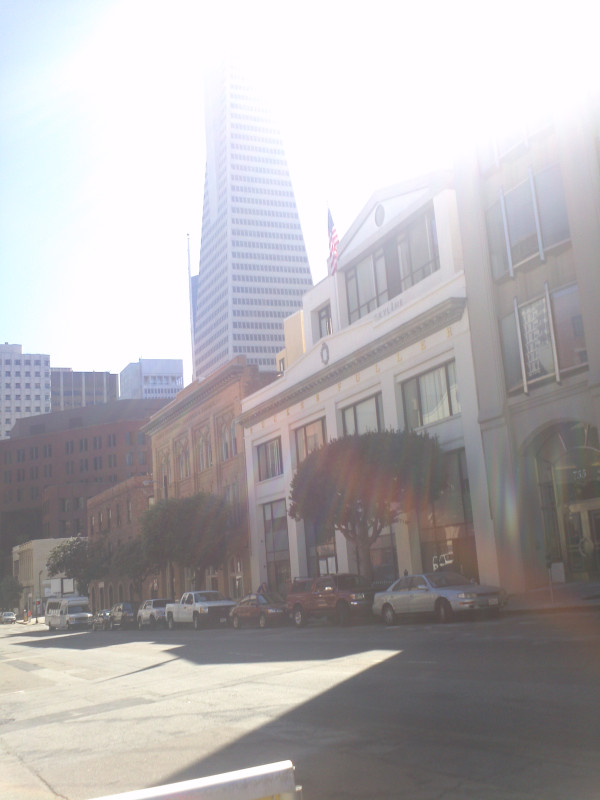 If you can’t tell, I have an affinity for the Transamerica Pyramid. I also happen to work around the corner from it. I went out for coffee this afternoon and couldn’t help but snap a pic of the building against the blazing sun.
